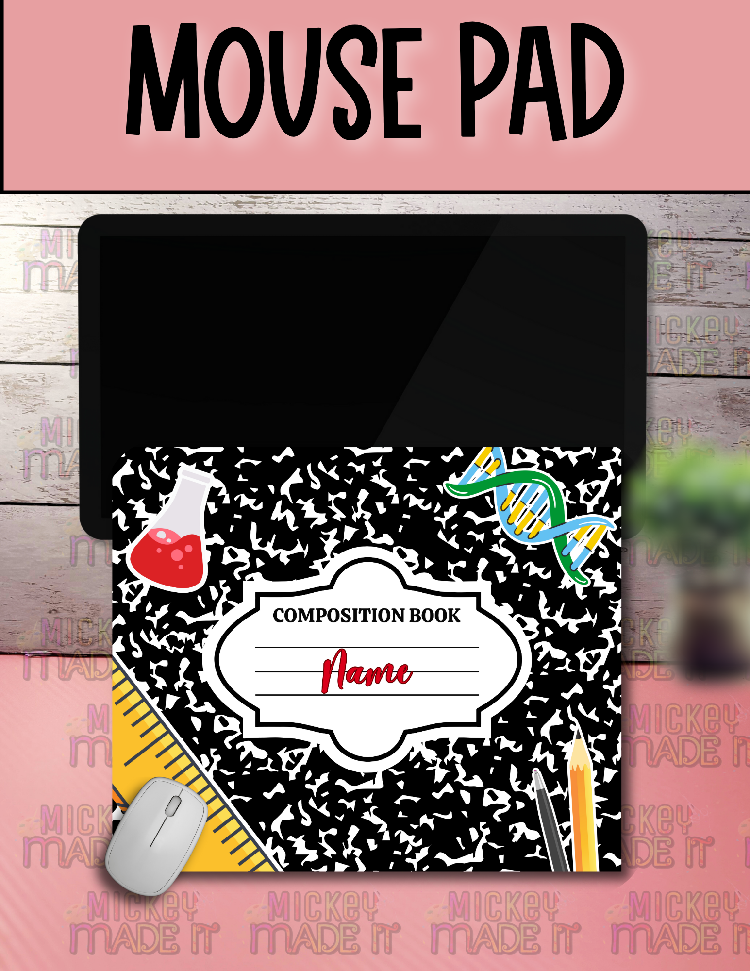 Bring back classroom nostalgia with this personalized composition notebook mouse pad! Styled like a classic black-and-white marble notebook and accented with science-themed details, it’s perfect for teachers, STEM lovers, and students alike. The smooth polyester surface ensures precise, effortless mouse gliding, while the non-slip rubber backing keeps everything steady during your busiest workdays. Customize the label with your name or short phrase for a personal touch.