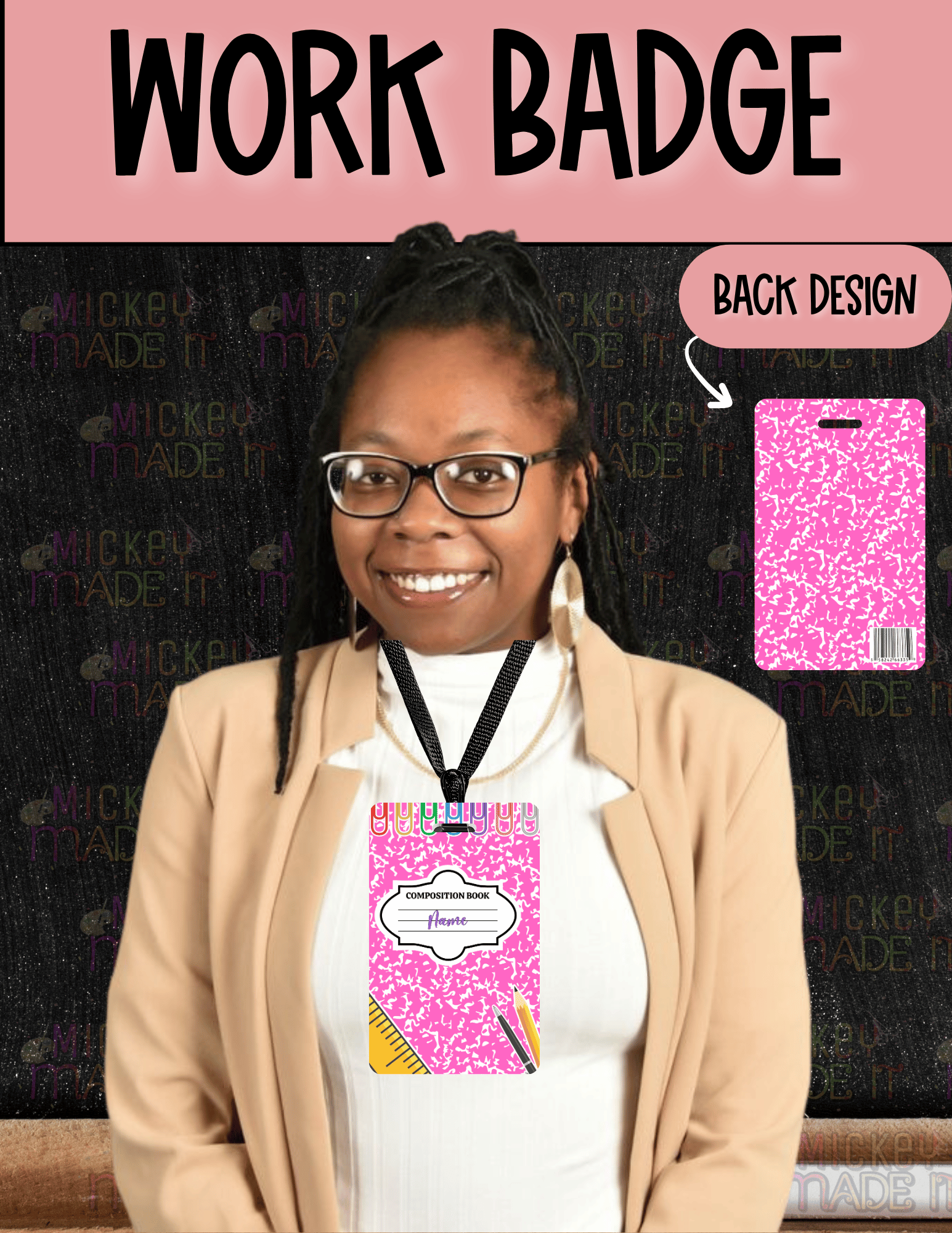 Pink Composition Notebook Inspired - Personalized Work Badge