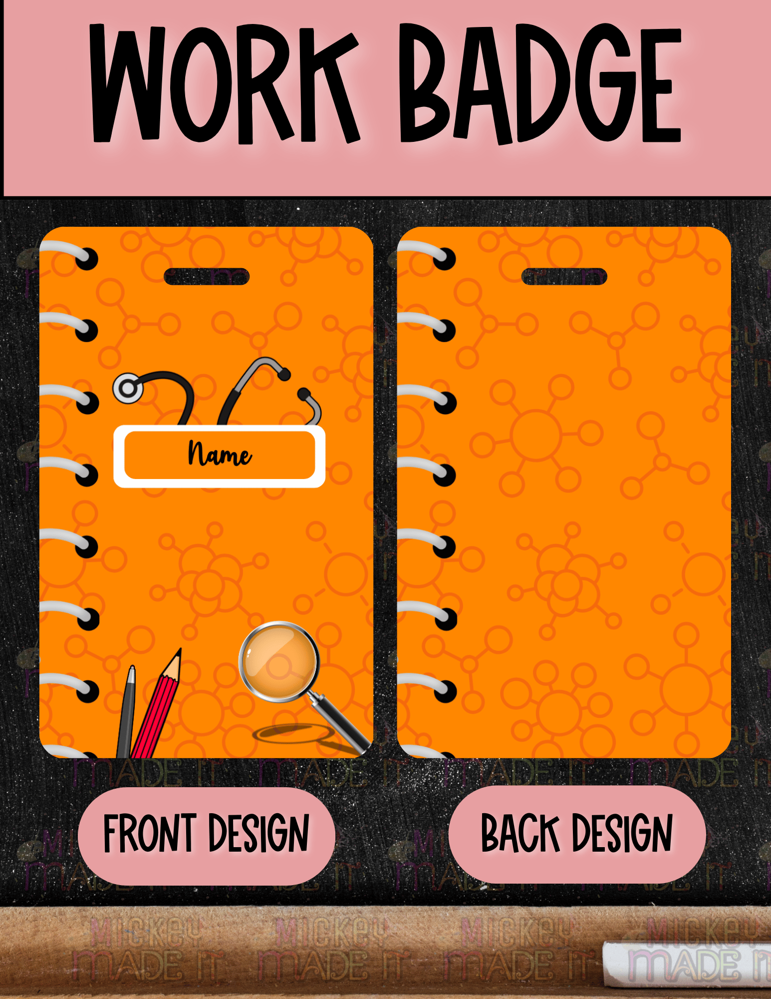 Add a little lab flair to your workday with this Science Notebook Inspired ID Badge! 🎒✏️This bold, bright badge features a stethoscope, pencils, magnifying glass, and atomic doodles on an orange spiral-bound notebook background — perfect for science teachers, STEM staff, or lab techs who want to show off their personality. Customize it with your name or short phrase and wear it with pride! The durable double-sided design includes a matching themed back and comes with a black lanyard for easy wear. 🍎😄
