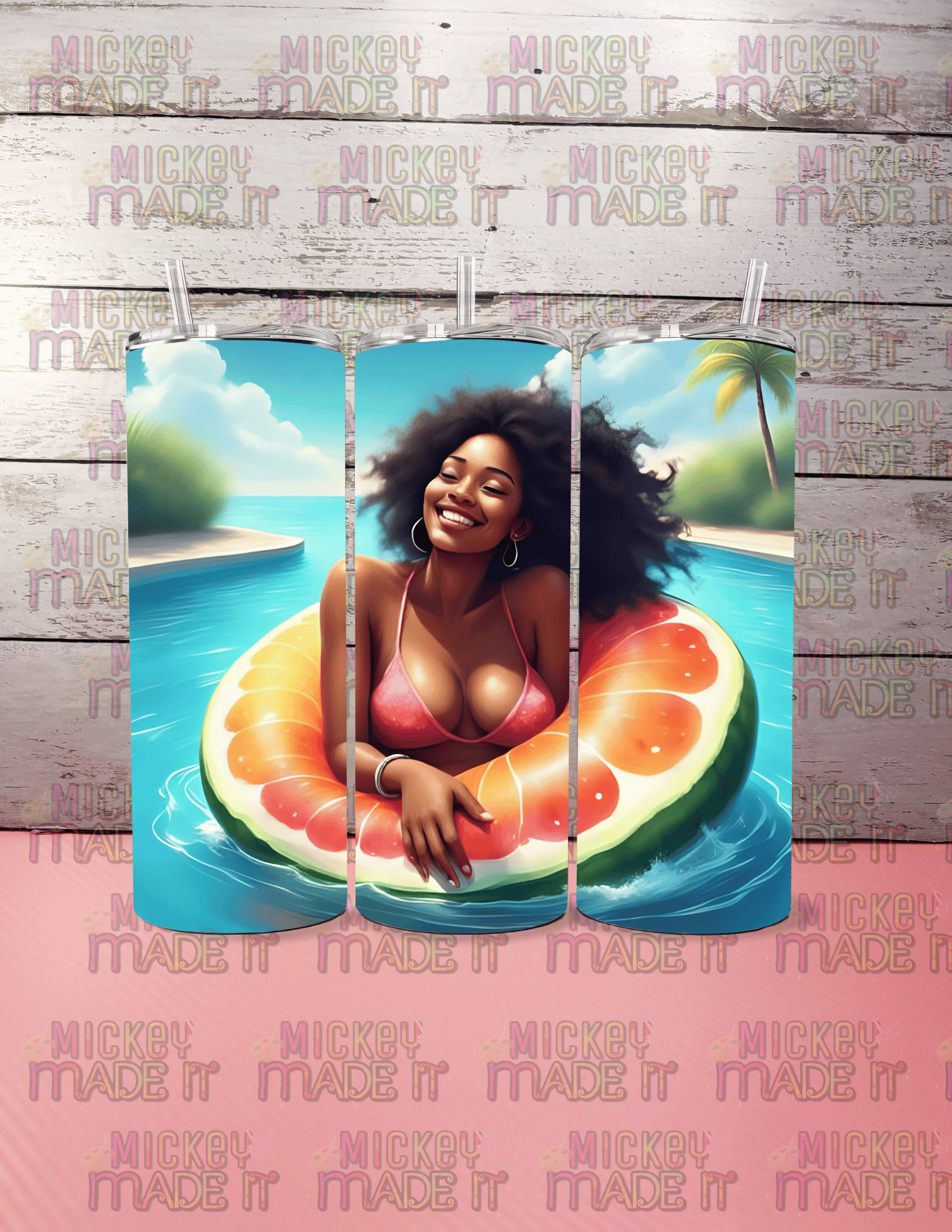 Bring the heat wherever you go with this vibrant Sun-Kissed Vibes tumbler featuring a glowing Black woman radiating joy on a citrus float. This 20oz stainless steel tumbler is a perfect reminder to sip slow, soak up the sun, and slay the day. Whether poolside or on the go, keep your drinks hot or cold for hours thanks to double-wall insulation.