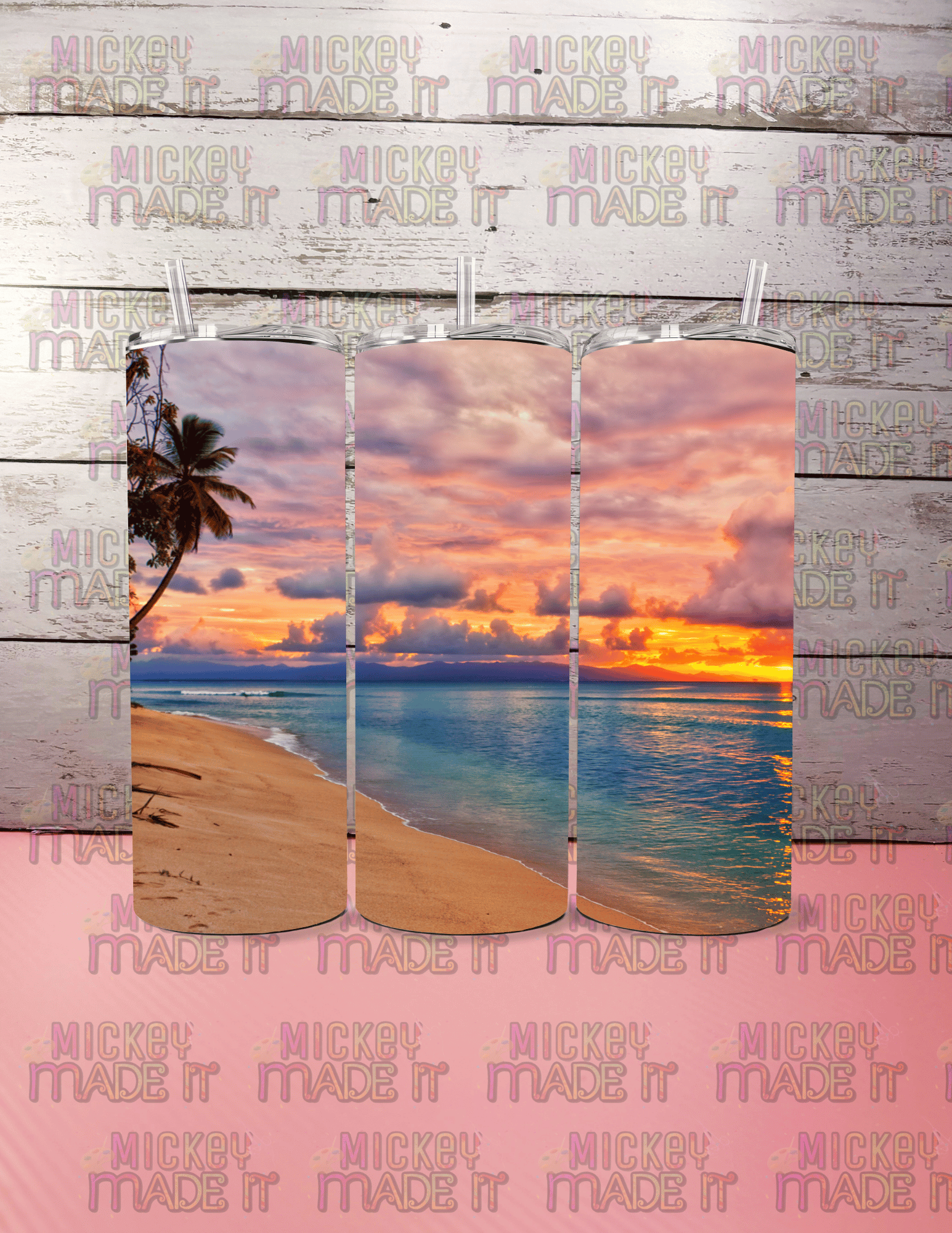 Sip your way to paradise with this Tropical Sunset Beach tumbler. 🌴 Featuring a peaceful shoreline, swaying palms, and a radiant sunset sky, this tumbler captures all the beauty of golden hour by the ocean. Designed on a durable double-wall insulated stainless steel tumbler, it keeps your drinks hot or cold while bringing a sense of calm and wanderlust to your everyday routine.